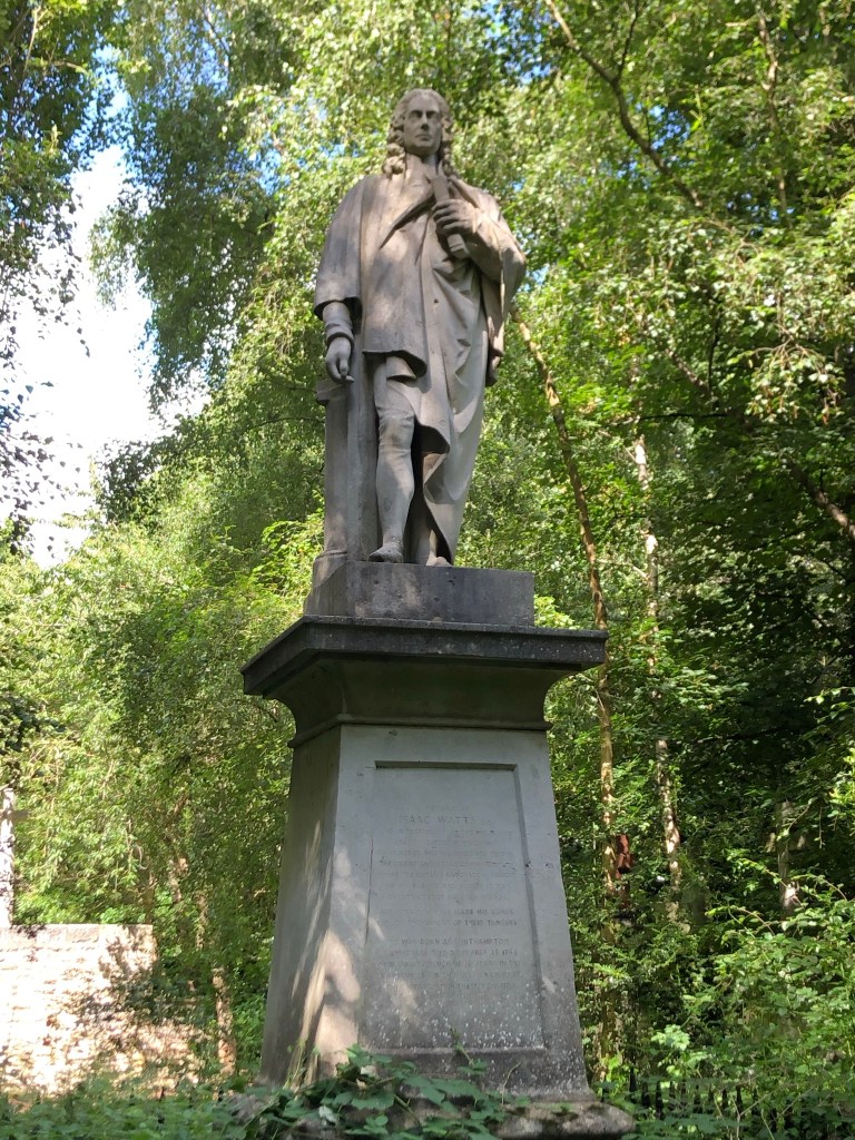 Wrth chwilio am fedd Betsi Cadwaladr deuthum ar draws gerflun mawr o’r emynydd Isaac Watts. Awdur degau o emynau Saesneg yn cynnwys,
