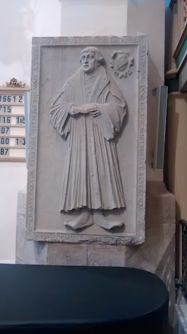 Cerflun o Martin Luther yn eglwys y plwyf Wittenberg